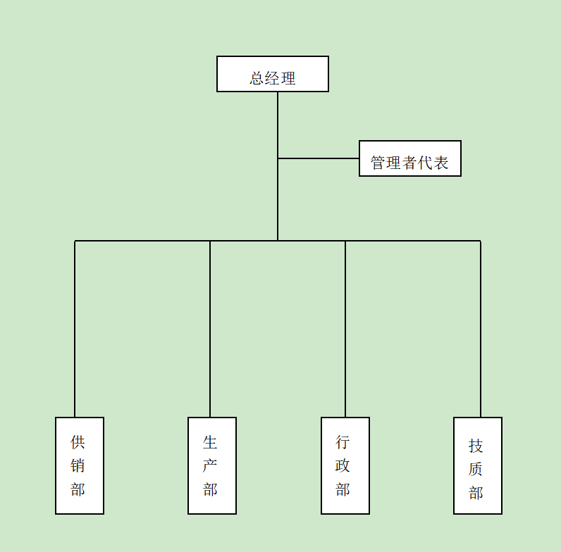 公司設(shè)立供銷部、生產(chǎn)部、行政部、技質(zhì)部等4個(gè)職能部門,明確了各部門及相應(yīng)管理人員的職責(zé),共同完成公司的質(zhì)量誠(chéng)信管理工作,保證質(zhì)量誠(chéng)信管理體系的有效運(yùn)行和持續(xù)改進(jìn),從而實(shí)現(xiàn)質(zhì)量誠(chéng)信目標(biāo)。(見圖1)